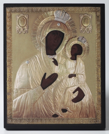 Икона в киоте 18х24 сложный, фото, риза объёмная №1 Тихвинская БМ