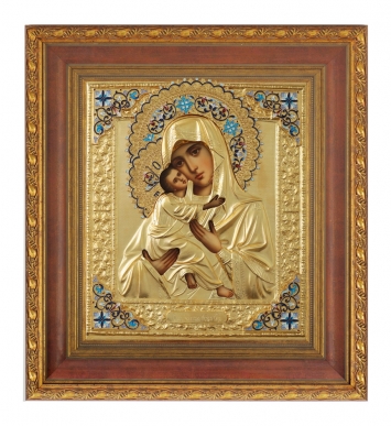 Икона в киоте 18х24 фигурный, темпера №8, риза-рамка объемная, открытая, золочёная, никелирование Владимирская БМ 1
