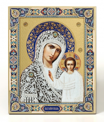 Икона на доске 18х24 золоченое покрытие, объёмная печать, лак Казанская БМ 5 (жемчуг)