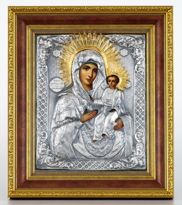 Икона живописная в киоте 30х40 масло, риза №204, черненое серебрение, киот №22 Смоленская БМ