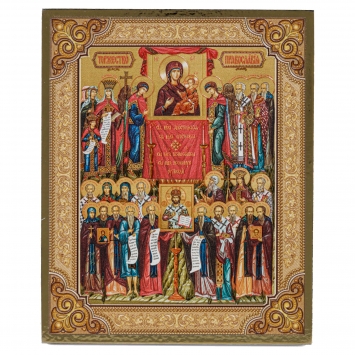Икона на доске 13х15 золоченое покрытие, объёмная печать, лак Торжество Православия,