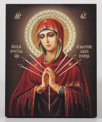 Икона на доске 13х15 объёмная печать, лак Умягчение злых сердец