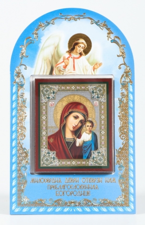 Икона в жесткой ламинации 5х8 с оборотом Казанская БМ 2