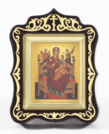Икона в пластмассовой рамке Киот 6х7 резной латунированный Всецарица