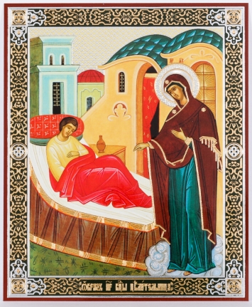 Икона на деревянном планшете 11х13 двойное тиснение Помощница в родах 2