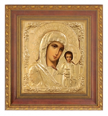Икона живописная в киоте 24х30 масло, риза №17, матовое глянцевое золочение, киот №22 Казанская БМ