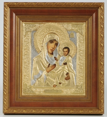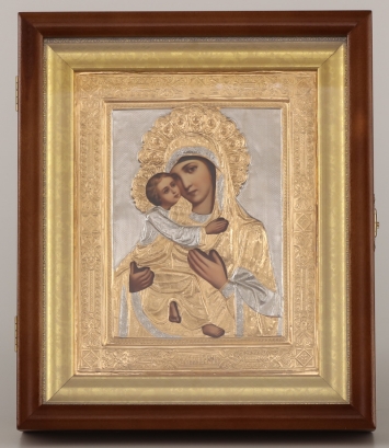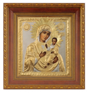 Икона живописная в киоте 24х30 масло, риза №2, матовое золочение, киот №22 Иверская БМ
