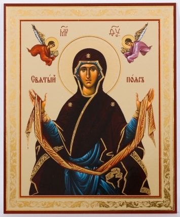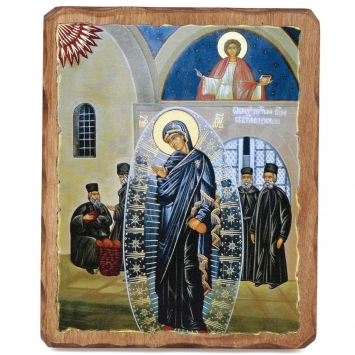 Икона на деревянном планшете 11х13 двойное тиснение Святой Пояс