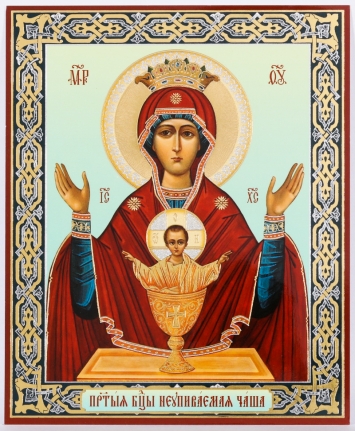 Икона на деревянном планшете 11х13 двойное тиснение Неупиваемая Чаша 4