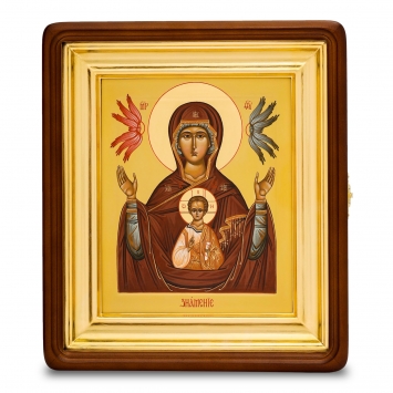 Икона живописная на доске в киоте 18х24 масло, золоченый нимб, киот №1 Знамение