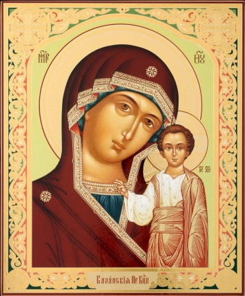 Икона на деревянном планшете 30х40 тиснение, ДСП, ПВХ Казанская БМ (с житием)