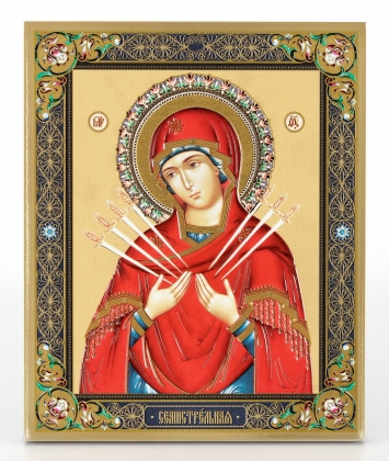 Икона на доске 13х15 золоченое покрытие, объёмная печать, лак Семистрельная БМ