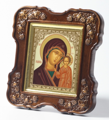 Икона в киоте 11х13 (лоза 4), темпера тиснение, подрамник поталь Казанская БМ