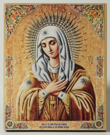Икона на деревянном планшете 6х9 двойное тиснение, аннотация, упаковка Умягчение злых сердец