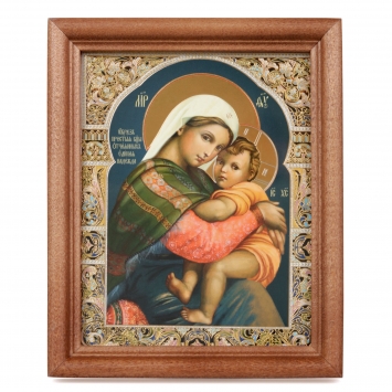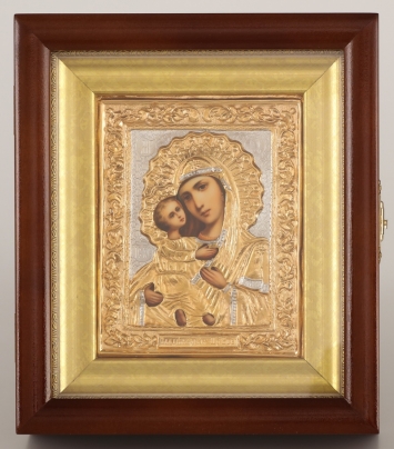Икона фото в киоте 11х13 риза №8 золоченая, багетный подрамник Владимирская БМ