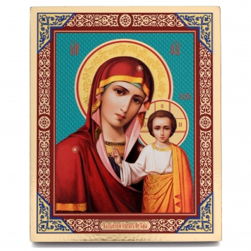 Икона на доске 13х15 золоченое покрытие, объёмная печать, лак Казанская БМ