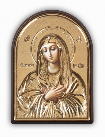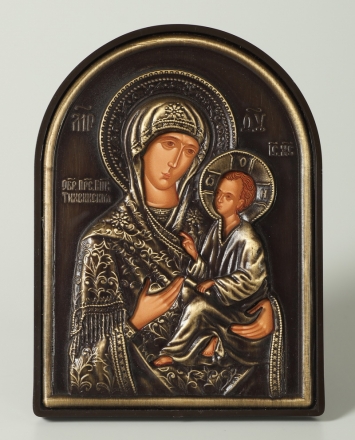 Икона настольная №3 финифть, эмаль / золочение / Достойно Есть