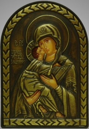 Икона в пластмассовой рамке 6х9 арочная риза №3 Владимирская БМ