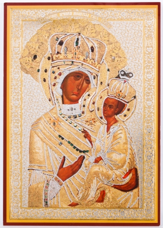 Икона в деревянной рамке №1 13х15 тиснение с венчиком Жировицкая БМ