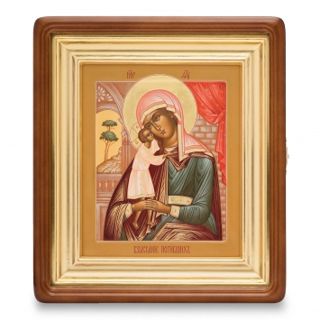 Икона в киоте 15х19 сложный, темпера, венчик, рамка фигурная, золочёная Умиление
