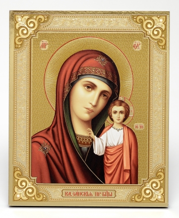 Икона на доске 18х24 золоченое покрытие, объёмная печать, лак Казанская БМ 3,