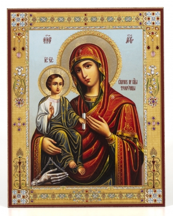 Икона на деревянном планшете 11х13 двойное тиснение Троеручица 4
