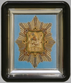 Икона настольная №12 финифть / золочение / Семистрельная БМ