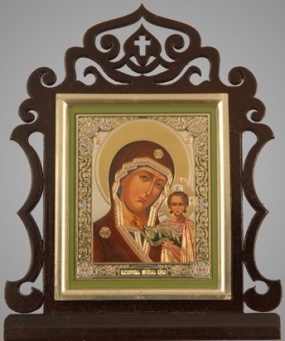 Икона настольная 6х7 двойное тиснение, золоченая рамка Казанская БМ