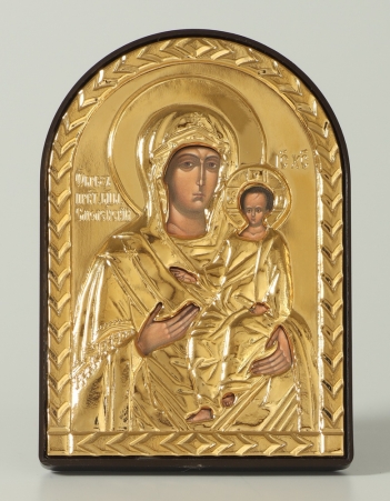 Икона в пластмассовой рамке 6х7 латунированная риза Смоленская БМ
