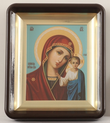 Икона в пластмассовой рамке Киот 11х13 латун. подрамник Казанская БМ 14
