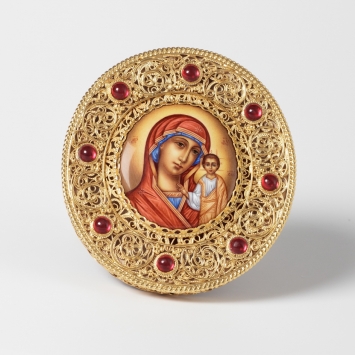 Икона именная №46 финифть, филигрань / золочение / Казанская БМ