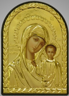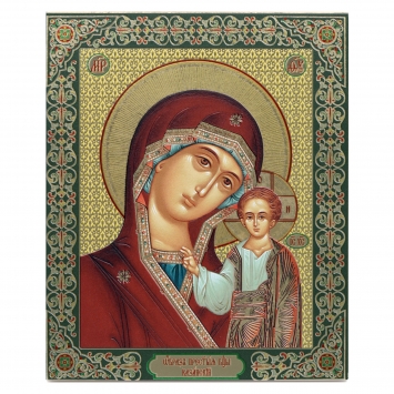 Икона на доске 18х24 золоченое покрытие, объёмная печать, лак Казанская БМ 4,