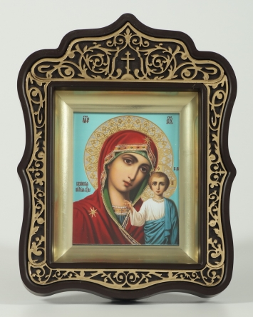 Икона в пластмассовой рамке Киот 11х13 латун. подрамник №2 Казанская БМ 7