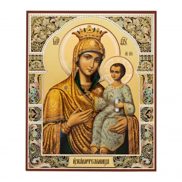 Икона на доске 13х15 золоченое покрытие, объёмная печать, лак Иверская БМ