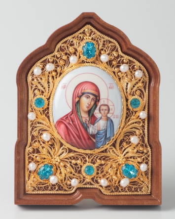 Икона именная №31 финифть, филигрань в деревянной рамке / золочение / Казанская БМ