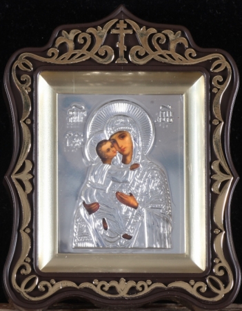 Икона в штампованном окладе 11*13 серебро / киот / золочение / Владимирская БМ (УИН)