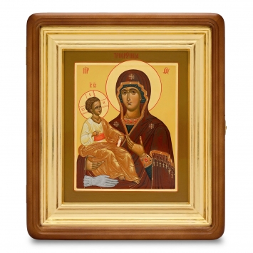 Икона живописная на доске в киоте 18х24 темпера, золоченый нимб, ковчег, киот №1 Троеручица