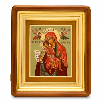 Икона живописная на доске в киоте 18х24 темпера, золоченый нимб, ковчег, киот №1 Достойно Есть