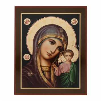 Икона на доске 13х15 золоченое покрытие, объёмная печать, лак Казанская БМ 2