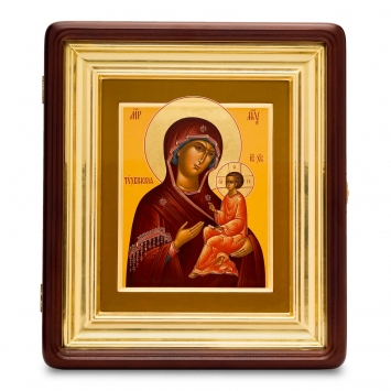 Икона живописная на доске в киоте 18х24 темпера, золоченый нимб, ковчег, киот №1 Тихвинская БМ