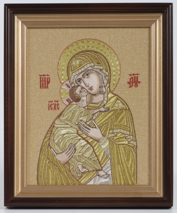 Икона вышивка автомат в сложном киоте 24х30 Владимирская БМ