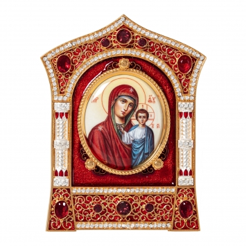 Икона настольная №136 деколь, эмаль / золочение, серебрение / Казанская БМ