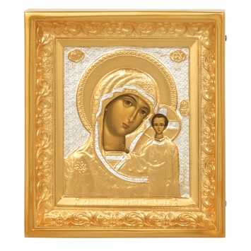 Икона живописная в серебряном окладе 24*30 / киот / Казанская БМ (УИН)