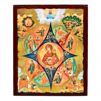 Икона на доске 13х15 золоченое покрытие, объёмная печать, лак Похвала Пресвятой Богородице