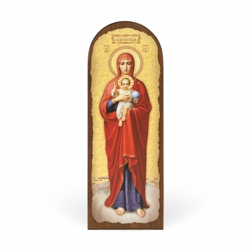 Икона на дереве 18х50 арочная, канвас, упаковка Валаамская БМ (желтый фон)