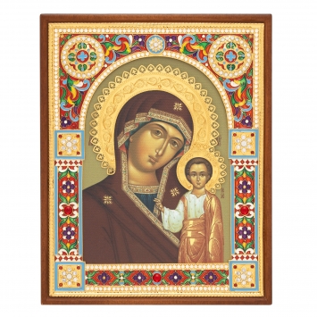 Икона в деревянной рамке №3 11х13 двойное тиснение Казанская БМ 39