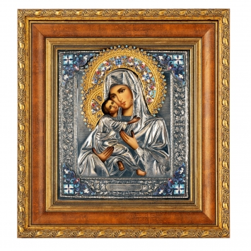 Икона в ризе 16х19 г / пластика, эмаль / канвас / золочение, электрофорез / в деревянной рамке Казанская БМ
