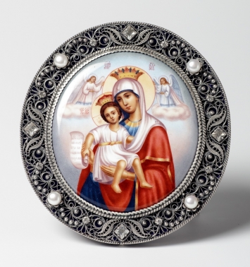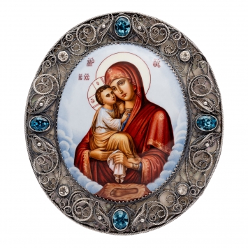 Икона именная №24 финифть, филигрань в деревянной рамке / серебрение / Почаевская