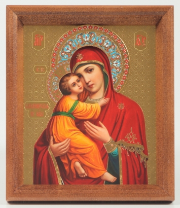 Икона в деревянной рамке №1 13х15 тиснение с венчиком Владимирская БМ