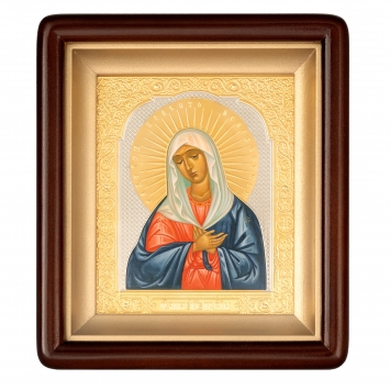 Икона живописная в киоте 11х13 масло, риза открытая, латунь, золочение, киот №2 Умиление БМ, 03914